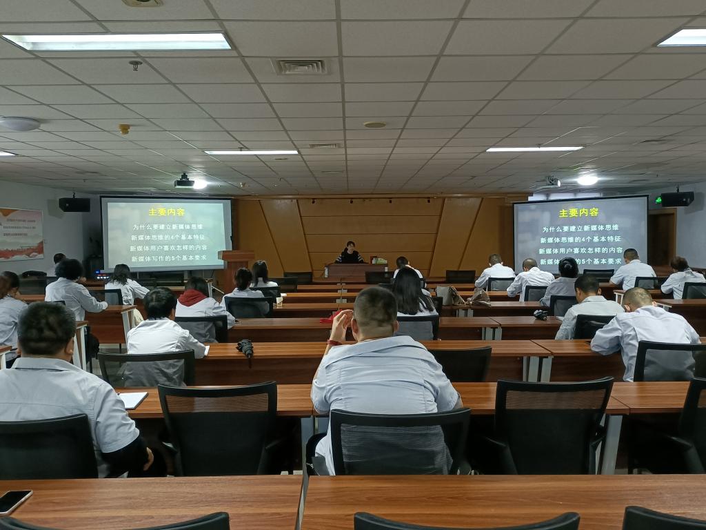 本次培訓特邀寶雞文理學院文學與新聞傳播學院余亞莉副教授講授,老師長期研究新聞和新媒體采編實務,她結合自身豐富的新聞教學、寫作經驗,運用通俗風趣的語言,以“新媒體思維的建立--通訊員的新媒體素養”為題,從為什么要建立新媒體思維,新媒體思維的四個基本特征、新媒體用戶喜歡什么樣的內容、新媒體寫作的6個基本要求四個方面,就企業專、兼職通訊員如何做好企業新媒體宣傳工作進行了詳實的授課。尤其是講到在新形勢下,如何充分利用好新媒體做好企業的宣傳工作,值得大家思考;面對重要信息、重大成就、經濟數據等新聞素材,挖掘提煉最具代表性的數據,用簡單直白的方式,用“見微知著”的辦法,把最亮眼的信息傳遞給讀者等內容時,贏得了參訓人員的陣陣掌聲。